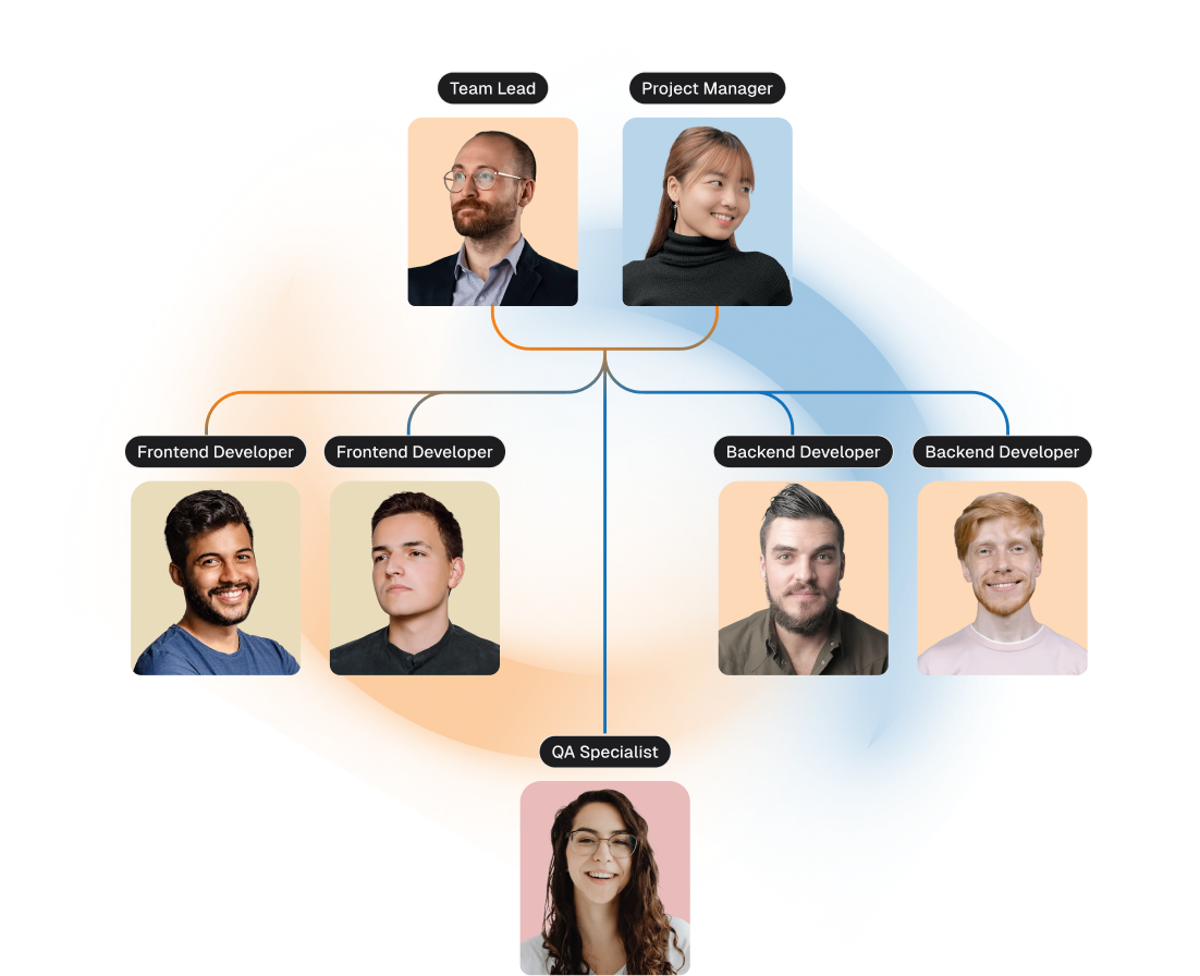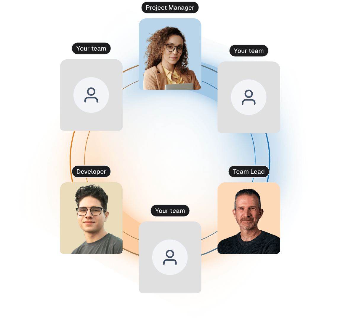 Wählen Sie unser Full Tech Team für eine Komplettlösung, die alle Aspekte Ihres Projekts abdeckt. Dieses Team, bestehend aus einem leitenden Entwickler, einem Projektmanager, vier Entwicklern und einem QA-Spezialisten, ist auf maximale Effizienz und Erfolg ausgerichtet.